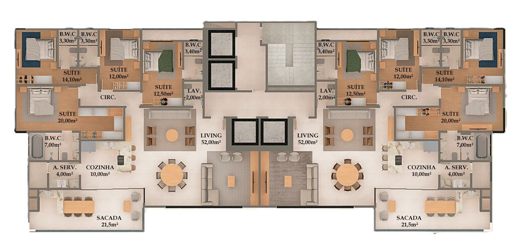 4 Dormitórios, sendo 4 Suítes